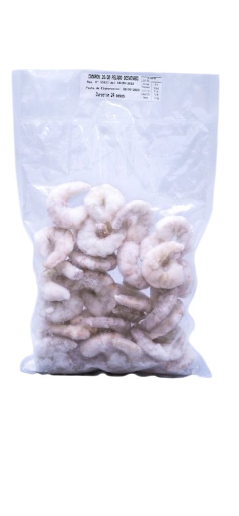 Camarón ecuatoriano calibre 26/30 pelado y desvenado crudo
